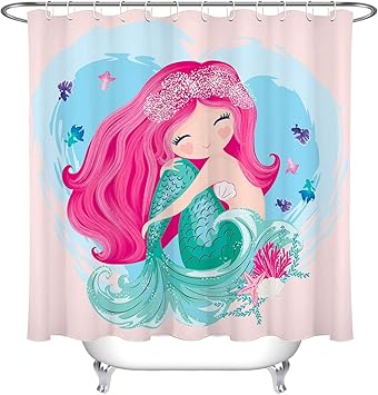 Amazon Com Lb Little Cute Mermaid Shower Curtain Set Cartoon