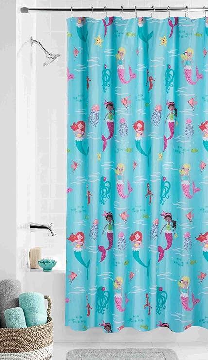 Amazon Com Cute Mermaid Shower Curtain Girls Cartoon Kids Blue