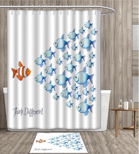 Kids Shower Curtain Sets Bathroom Quote With Outsider Fish Against