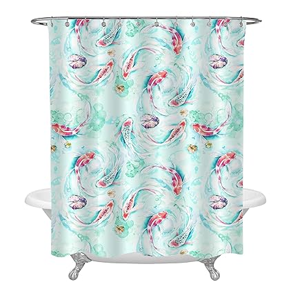 Nyaa Colorful Fancy Koi Fish Shower Curtains Polyester Fabric