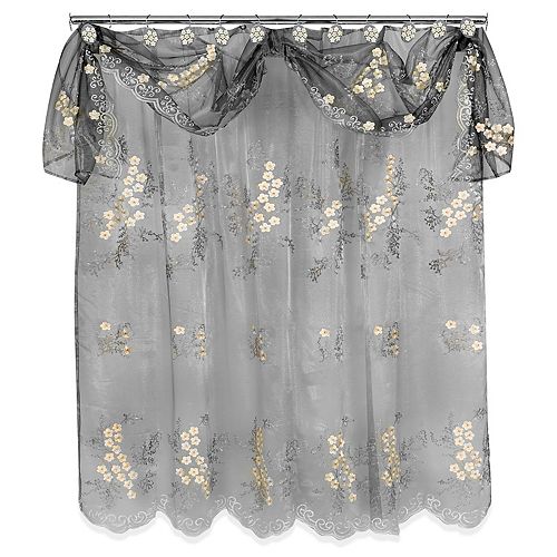 Lace Fabric Shower Curtain With An Attached Valance Bathroom