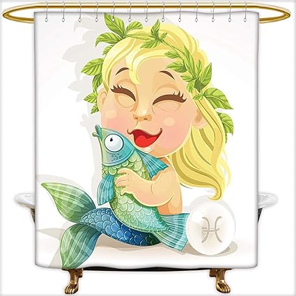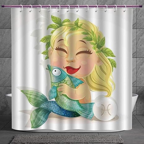 Fun Shower Curtain 2 0 Astrology Baby Pisces Symbol Holding Fish