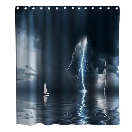 Amazon Com Ocean Lightning Sailboat Decor Fabric Shower Curtain
