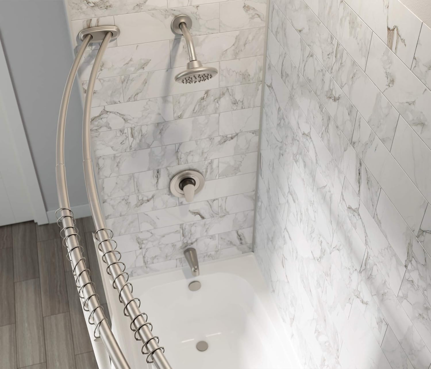 Adjustable Curved Shower Curtain Rod 60 Tension Brushed Nickel
