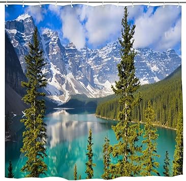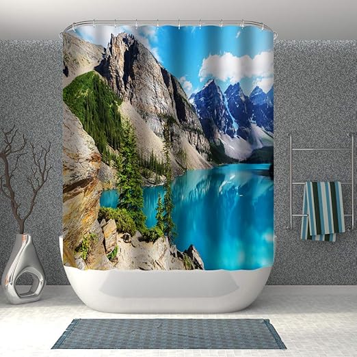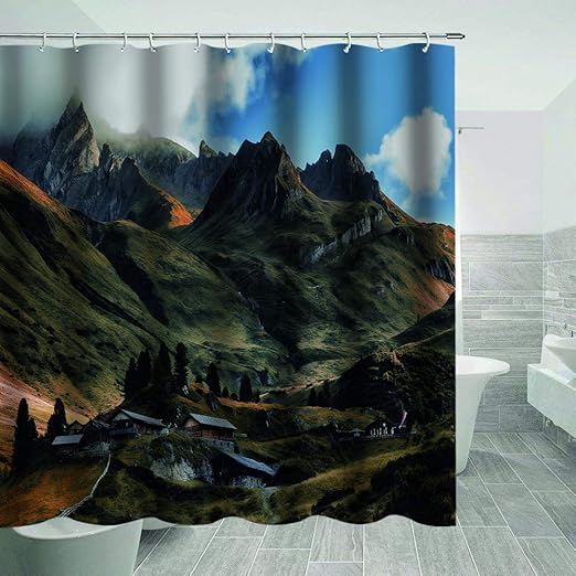 Amazon Com Mountain Scene Fabric Shower Curtain Landscape Shower