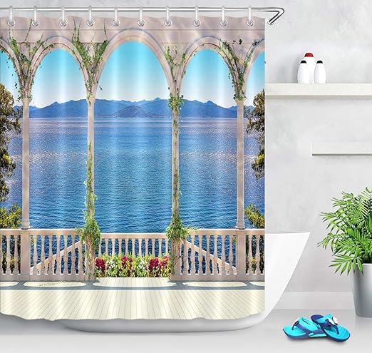Amazon Com Lb Palace Balcony To Lake Mountain Scene Shower