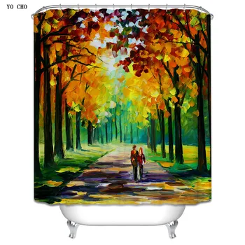 Yo Cho Scenic Bath Curtains Bathroom Curtain Leaf Printed