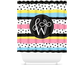 Stylish Black White Stripe Floral Shower Curtains Personalised