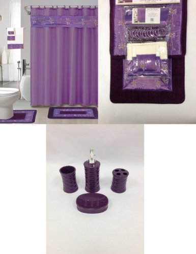 19 Piece Bath Accessory Set Purple Zebra Bathroom Rugs