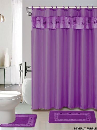 Amazing Sales Lace Shower Curtain Liner And Bath Rug Set Purple