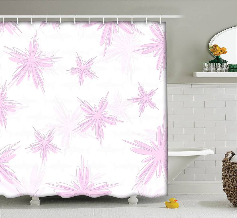 Floral Design Pvc Shower Curtain With Hooks 54 X 84 Inches