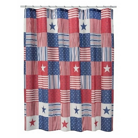 Celebrate Americana Red White Blue Fabric Shower Curtain Usa