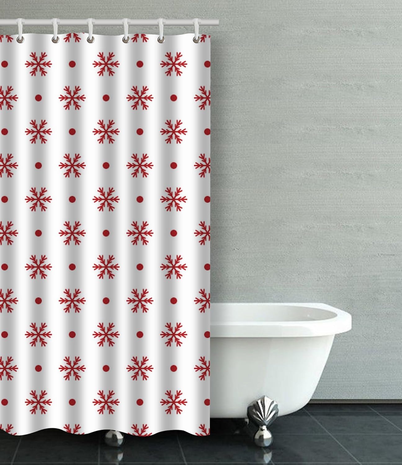 Amazon Com Emvency Shower Curtain Cute Snowflake Polka Dot Red