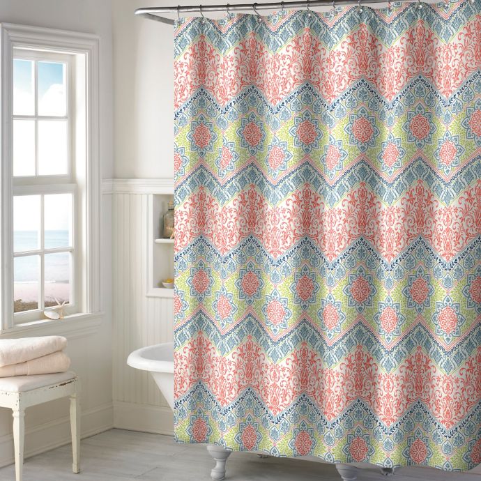 New Sage Chevron Shower Curtain In Coral Bed Bath Beyond