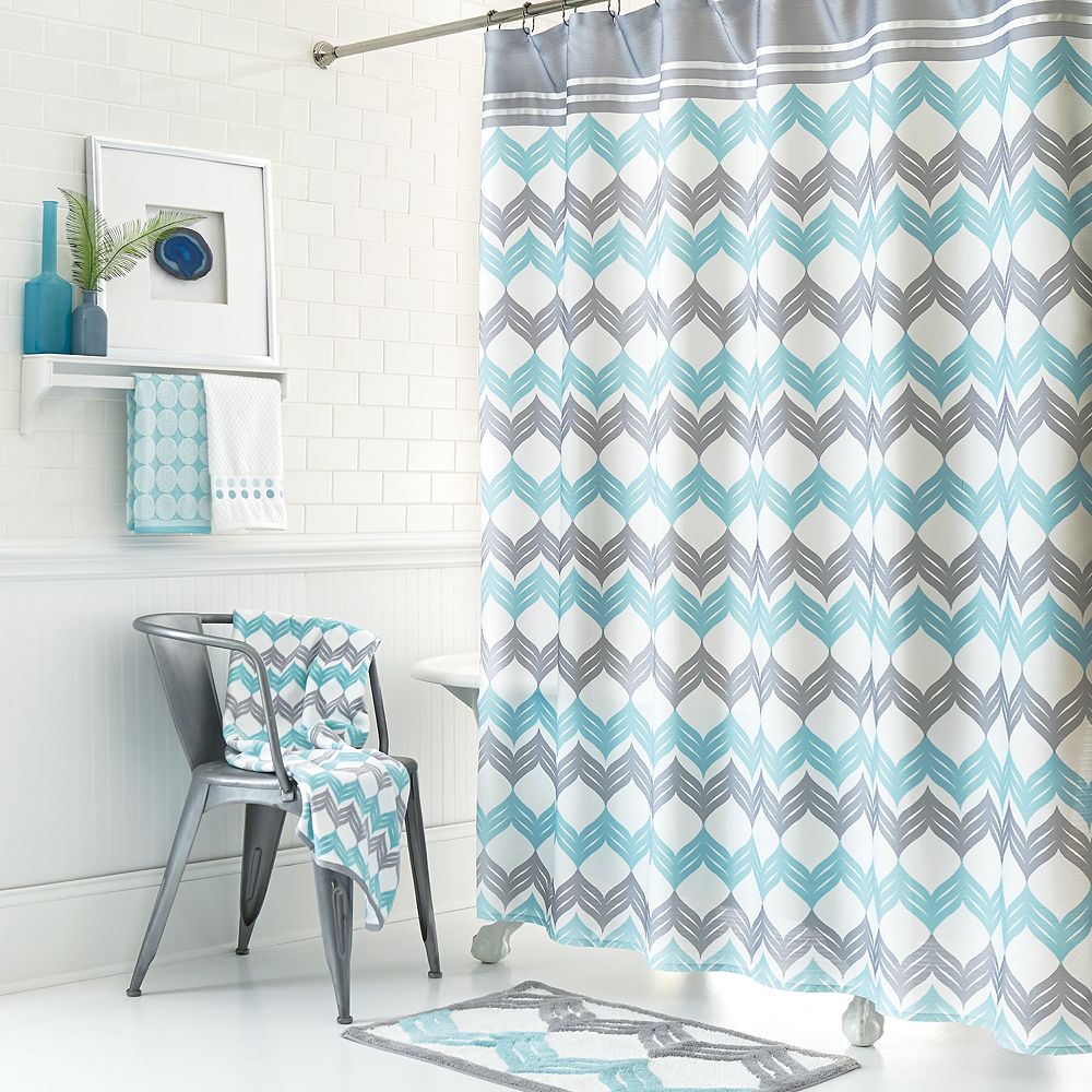 Grey Chevron Shower Curtain White And Teal Funvids Info