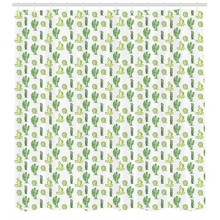 Cactus Shower Curtain Doodle Style Cartoon Floral Arrangement