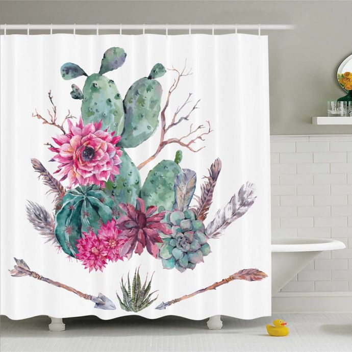 Bleum Cade Cactus Shower Curtain Watercolor Cactus Flower In Boho