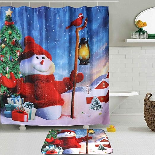 Amazon Com Ourwarm Christmas Shower Curtain Winter Snowman Xmas