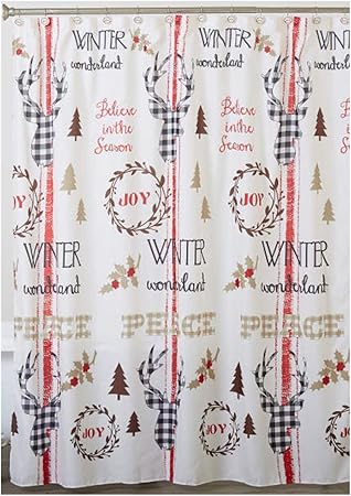 Amazon Com Christmas Shower Curtain Winter Wonderland Rustic Stag