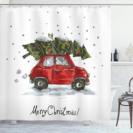 Amazon Com Christmas Shower Curtain Red Retro Truck Carrying