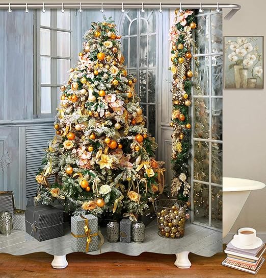 Amazon Com Vancar Christmas Shower Curtain Sparkling Christmas