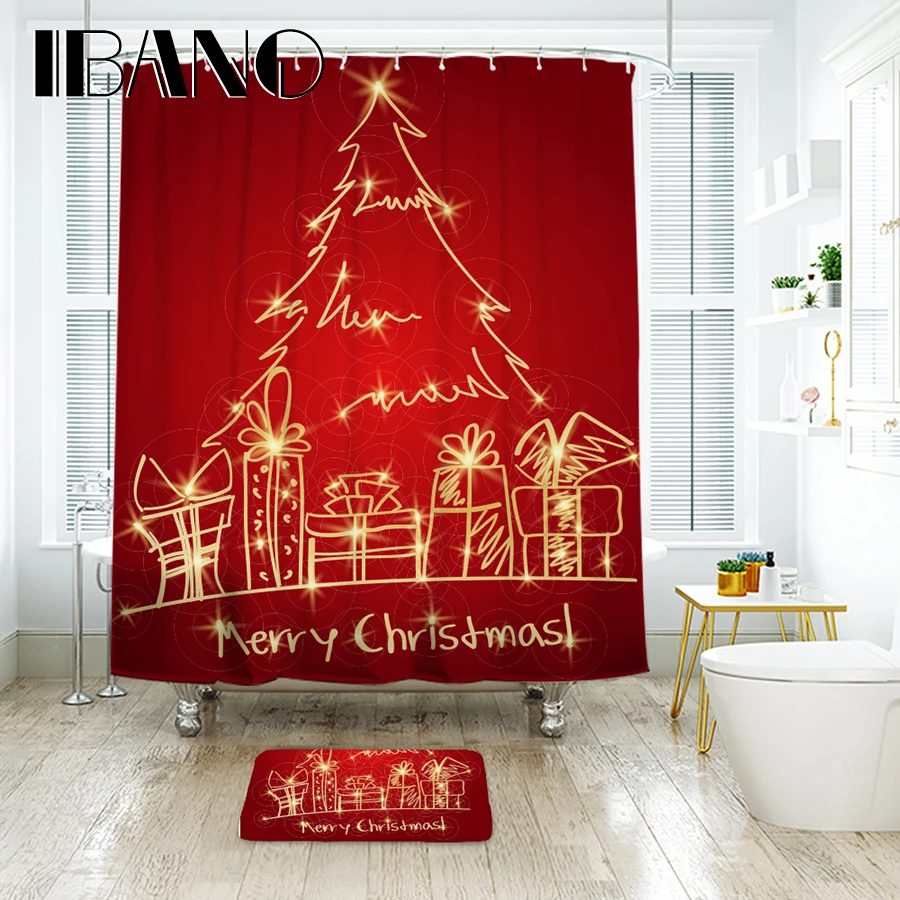 Ibano Christmas Tree Shower Curtain Waterproof Polyester Fabric