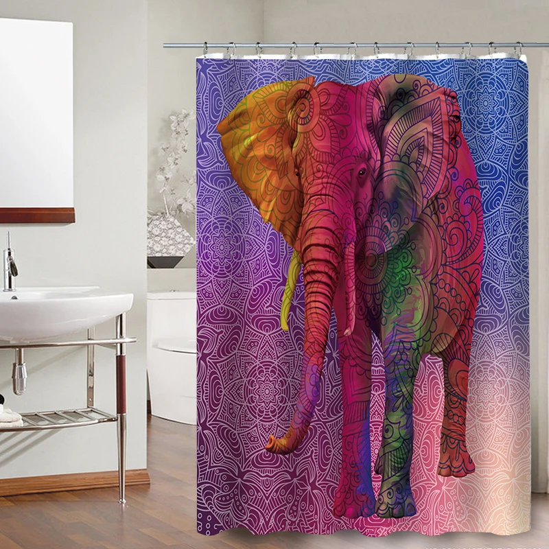 180 180cm Colorful Elephant Pattern Fabric Waterproof Bathroom