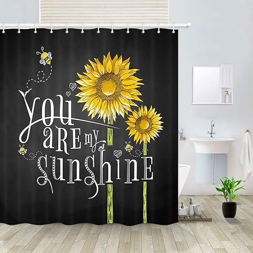 Floral Shower Curtain Hello Sunshine Bath Curtain Sunflower Etsy