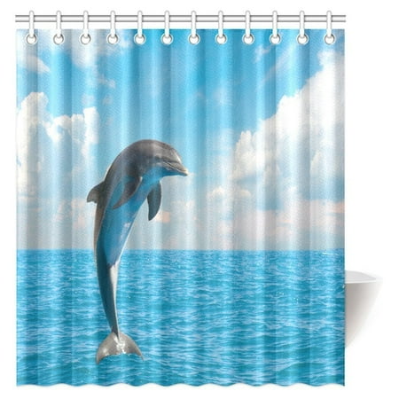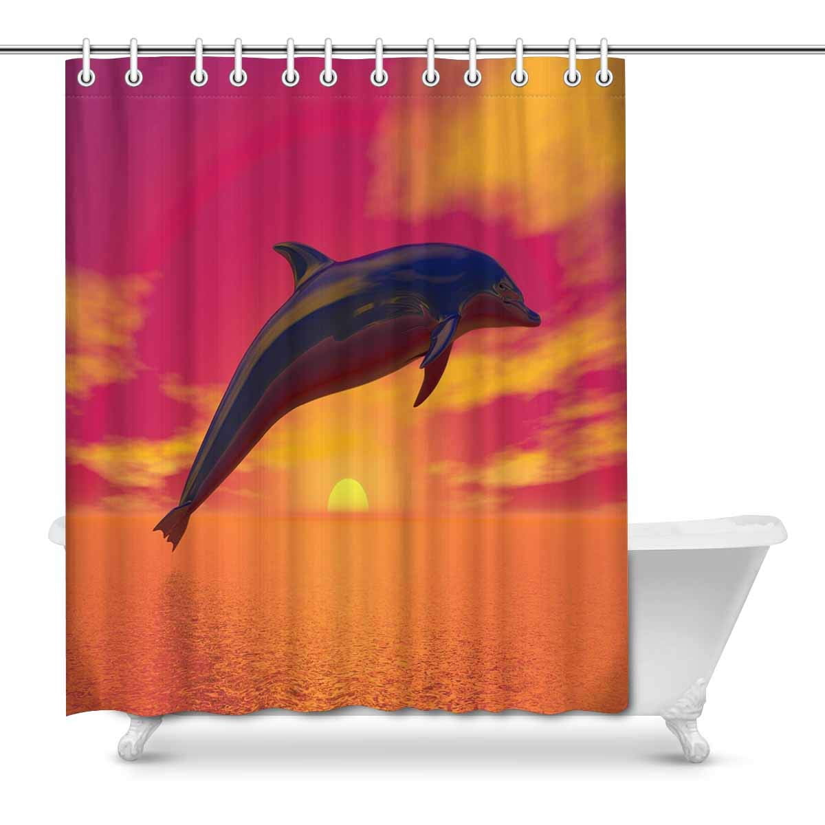 Gckg Jumping Dolphin Shower Curtain Beautiful Seascape With Deep
