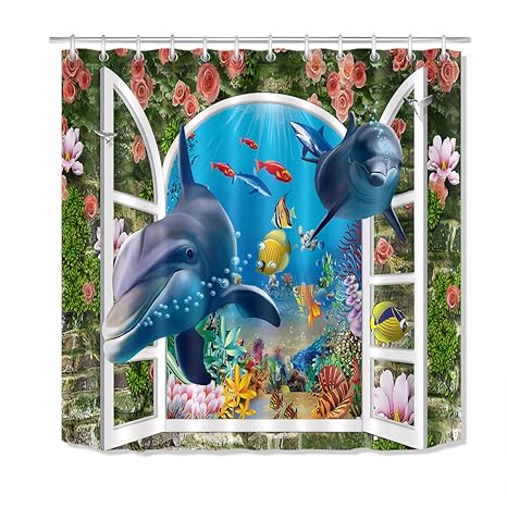 Amazon Com Nihai 1pc 3pcs 4pcs Coral Dolphin Shower Curtain Set