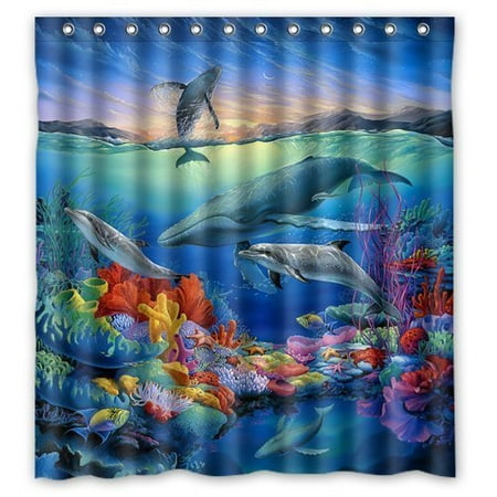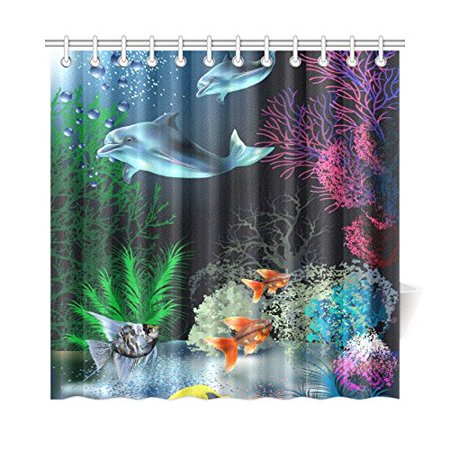 Hellodecor Cartoon Undersea World Dolphin Shower Curtain Polyester