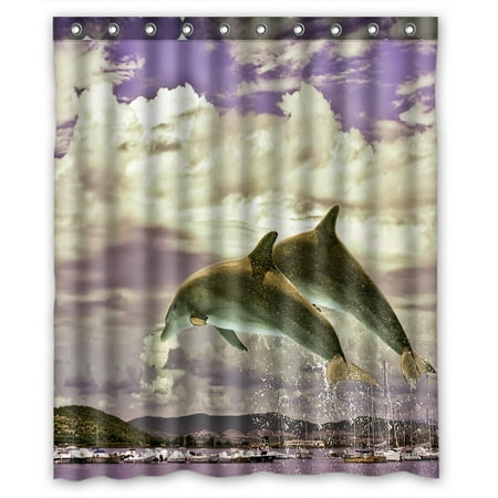 Amazing Deal Ganma Charming Playing Joyful Dolphin Shower Curtain