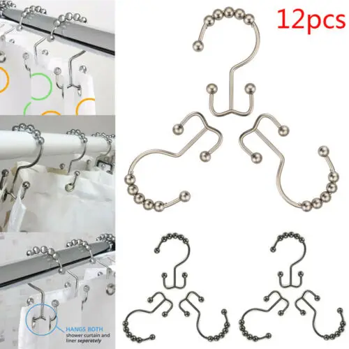12pcs Rustproof Shower Curtain Rings Roller Double Glide Shower