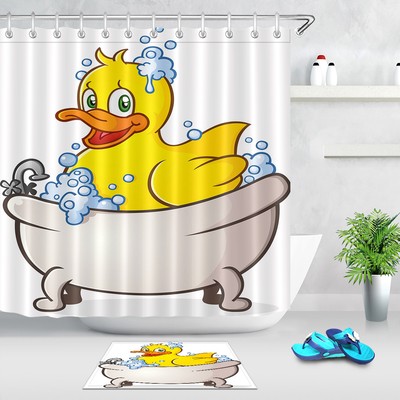 Rubber Duck Shower Curtain Set Cute Yellow Cartoon Duckies