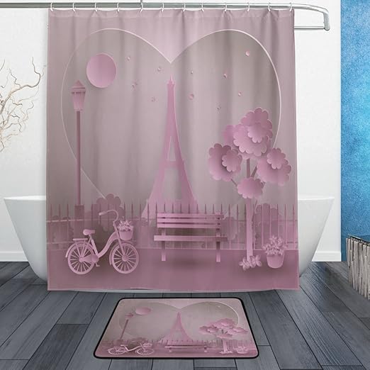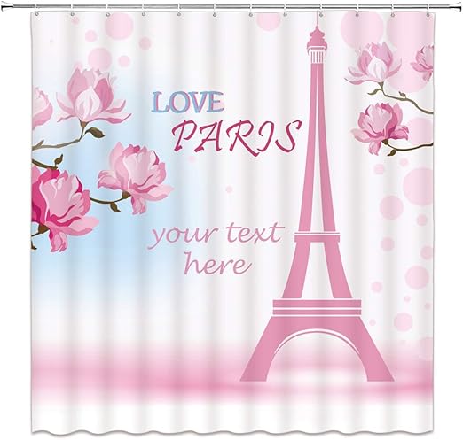 Amazon Com Feierman Pink Love Paris Shower Curtain Decor Romantic
