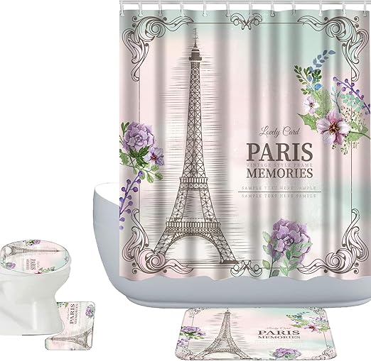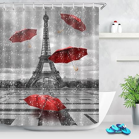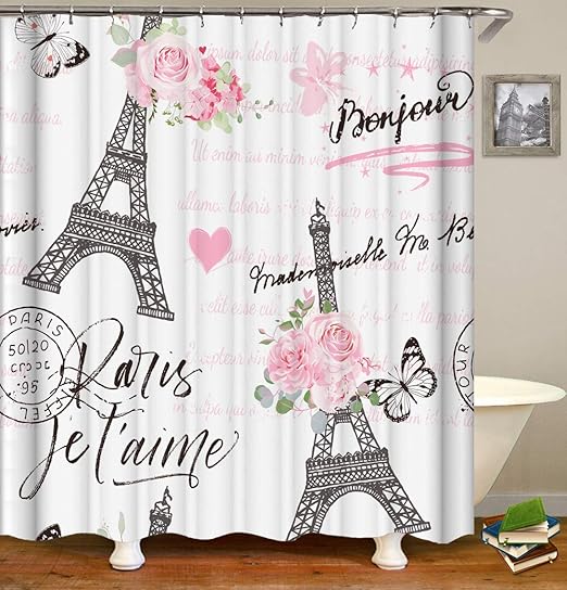 Amazon Com Riyidecor Paris Shower Curtain Eiffel Tower Thicken