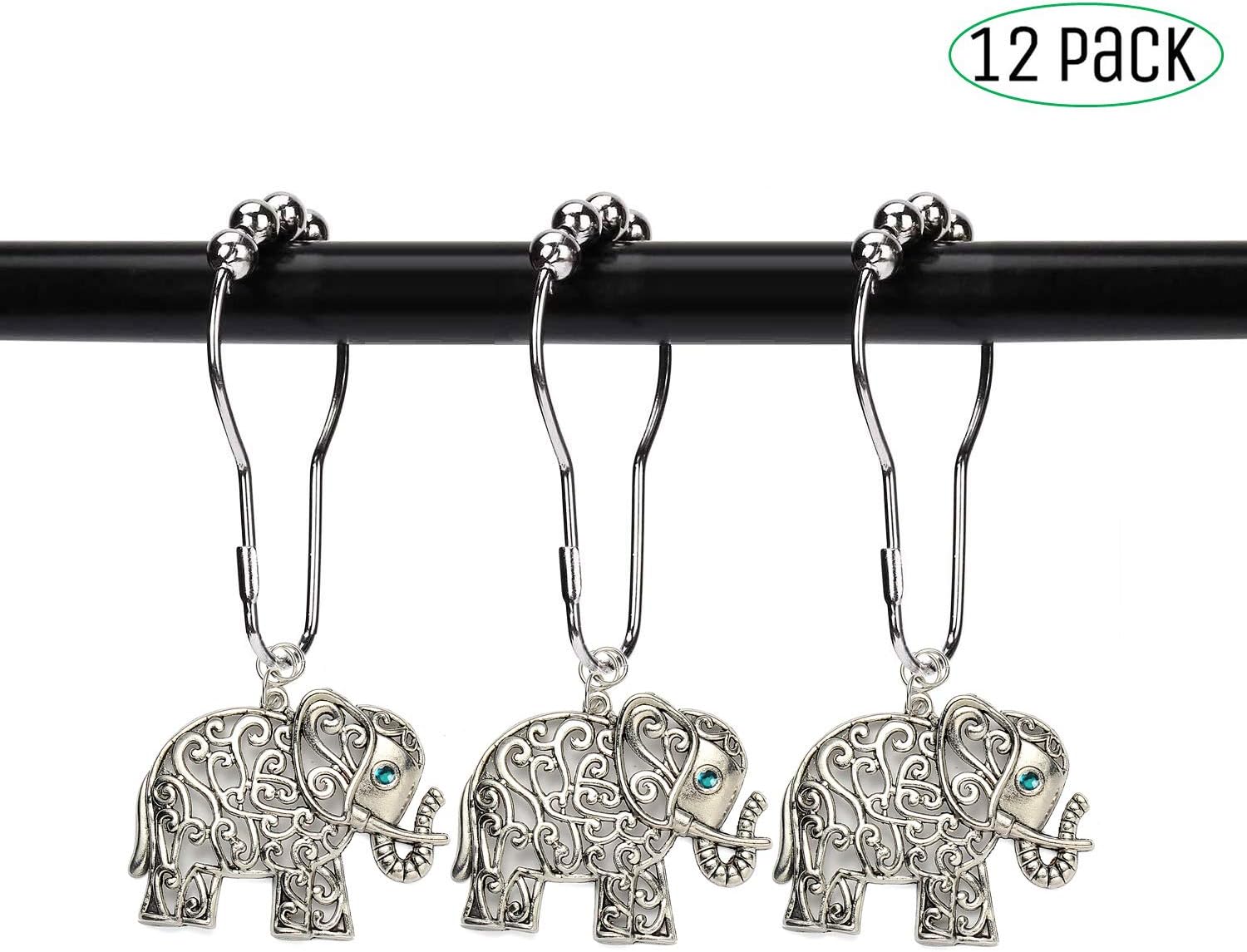 Elephant Shower Curtain Hooks Set Of 12 Antique Silver Or Etsy