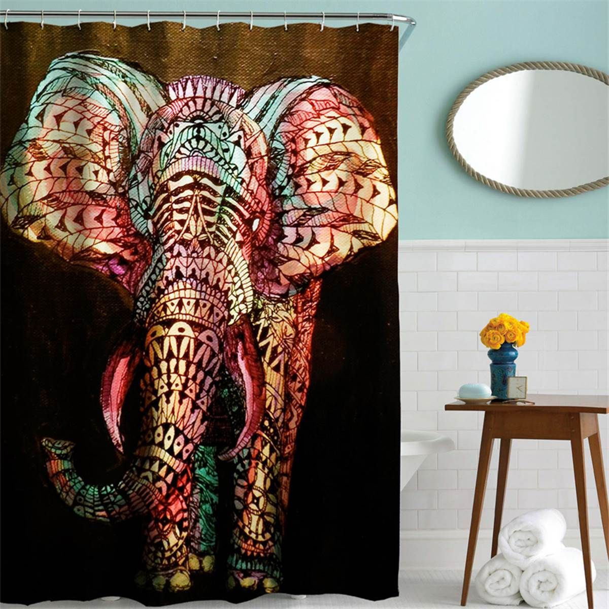 Bohemian Elephant Shower Curtain Fabric Waterproof Bathroom Decor