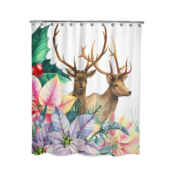 Flower Elk Shower Curtainwaterproof Designnatural Bathroom Etsy