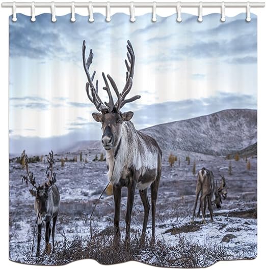 Elk Print Shower Curtain Deer Wapiti Moose Waterproof Bath