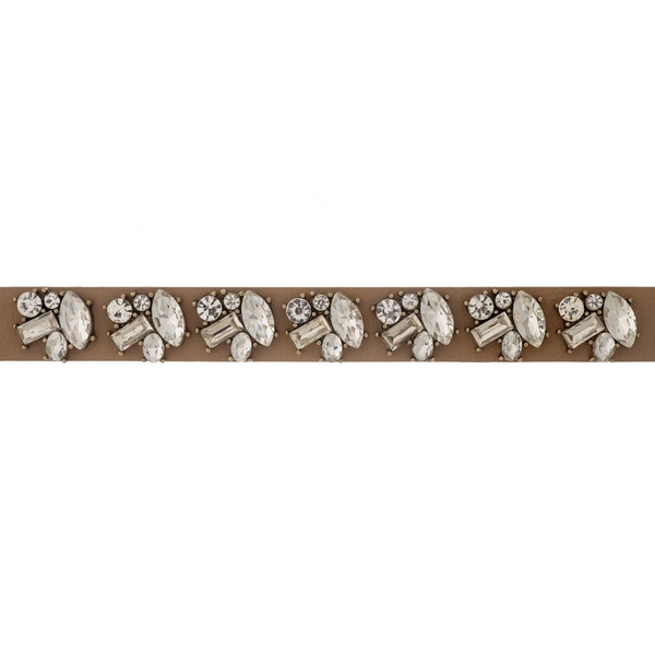 Brown Faux Leather Choker With Clear Rhinestones Approximately 12
