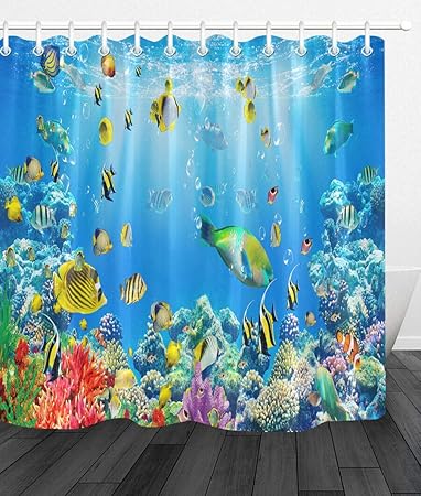 Blue Ocean Tropical Fish Coral Undersea World Shower Curtains With