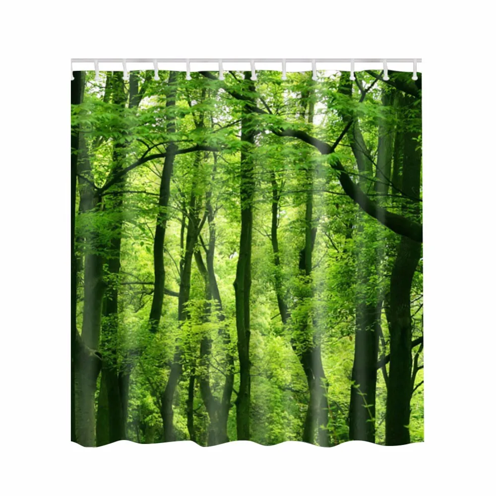 3d Shower Curtain Green Forest Bathroom Drapes Curtains Nature