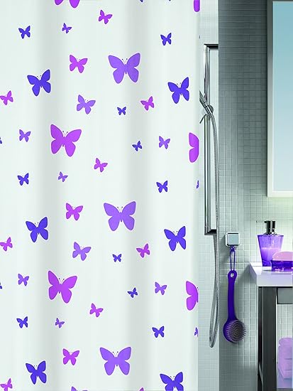 Spirella Fly Purple Textile Polyester Shower Curtain 180 X 200 Cm