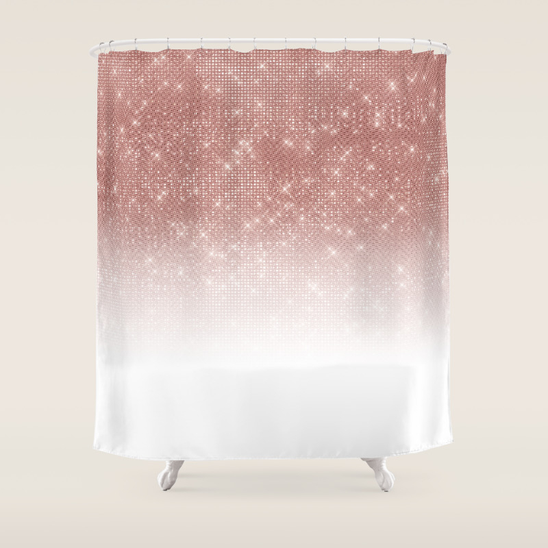 Girly Faux Rose Gold Sequin Glitter White Ombre Shower Curtain By