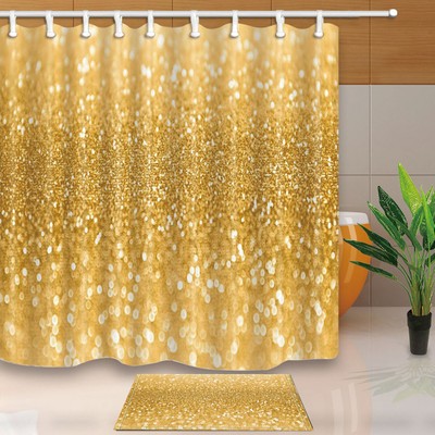 Gold Sequin Shower Curtain Bathroom Waterproof Fabric 12hooks 71