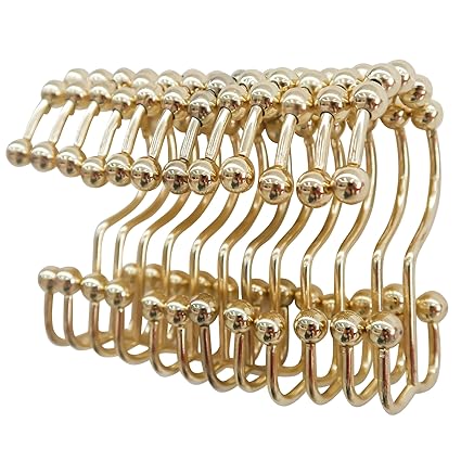 Heavy duty unique design shower hooks strong enough to hold a heavy curtain ensure these waterproof shower hooks will not come off. Need a new shower curtain rod. Tantai shower curtain hooks gold rustproof stainless steel shower curtain rings hooks for bathroom or bedroom curtains and liner rodsfive metal ball designset of 12 hooks.
