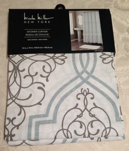 Nicole Miller Laurel Aqua Gray Medallion Shower Curtain 100