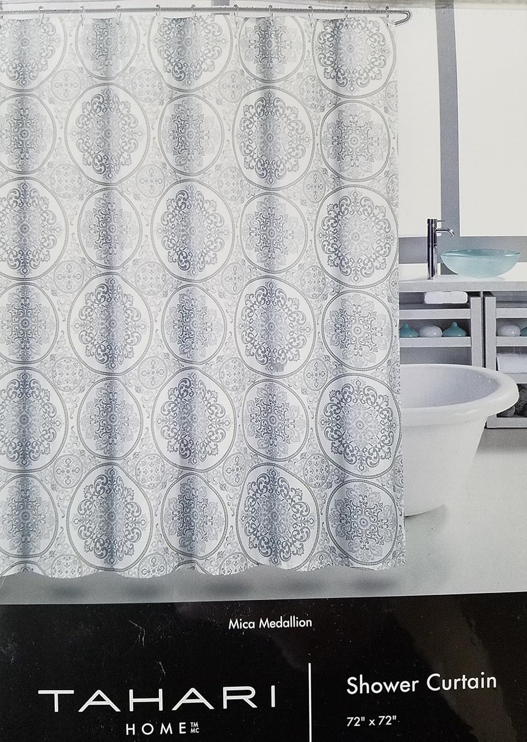 Amazon Com Tahari Mica Medallion Shower Curtain Grey On White
