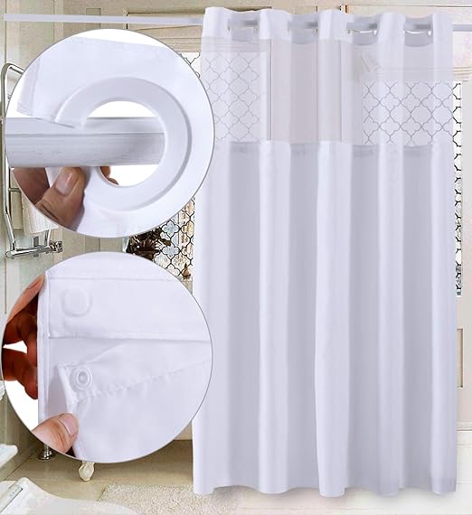 Amazon Com Comfecto Hookless Shower Curtain No Snap In Liner